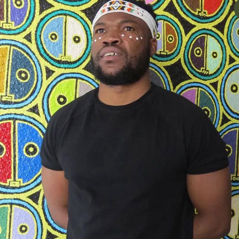 Siyabonga Mlambi, born in Bizana in South Africa's Eastern Cape, draws deep inspiration fromhis culturally rich roots—also home to icons like Winnie Madikizela-Mandela and Oliver Tambo.A lifelong passion for art led him to study design, where he developed a distinctive mixed-mediaapproach using acrylic, fabric, stones, ink, and found materials. His signature style, Khanda-ArtSuperblur African Synthetic Cubism, blends vibrant colour, movement, and emotion throughelements like lines, shapes, and texture. Rooted in the Nguni concept of "Khanda"—to create fromscratch—his work celebrates unity, imagination, and positivity, inviting viewers to feel beautybeyond what the eye can see.