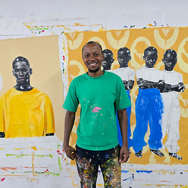 Steve Maphoso, a self-taught Angolan-born artist, uses acrylic and charcoal to explore emotional states rooted in personal experience. His portraits—focused on expressive eyes and layered with cloud-like abstractions—are poetic meditations on love, memory and connection. His latest body of work introduces a symbolic narrative of twin boys who have migrated from an ancient age, guided by ancestral intent for the artist to initiate them into traditional rituals in Mpumalanga. These works explore themes of heritage, migration, and the intimacy of brotherhood, reflecting a journey into parenthood and personal transformation. Maphoso invites viewers into his world—where grief and beauty converge, tradition meets evolution, and the intangible becomes momentarily graspable.